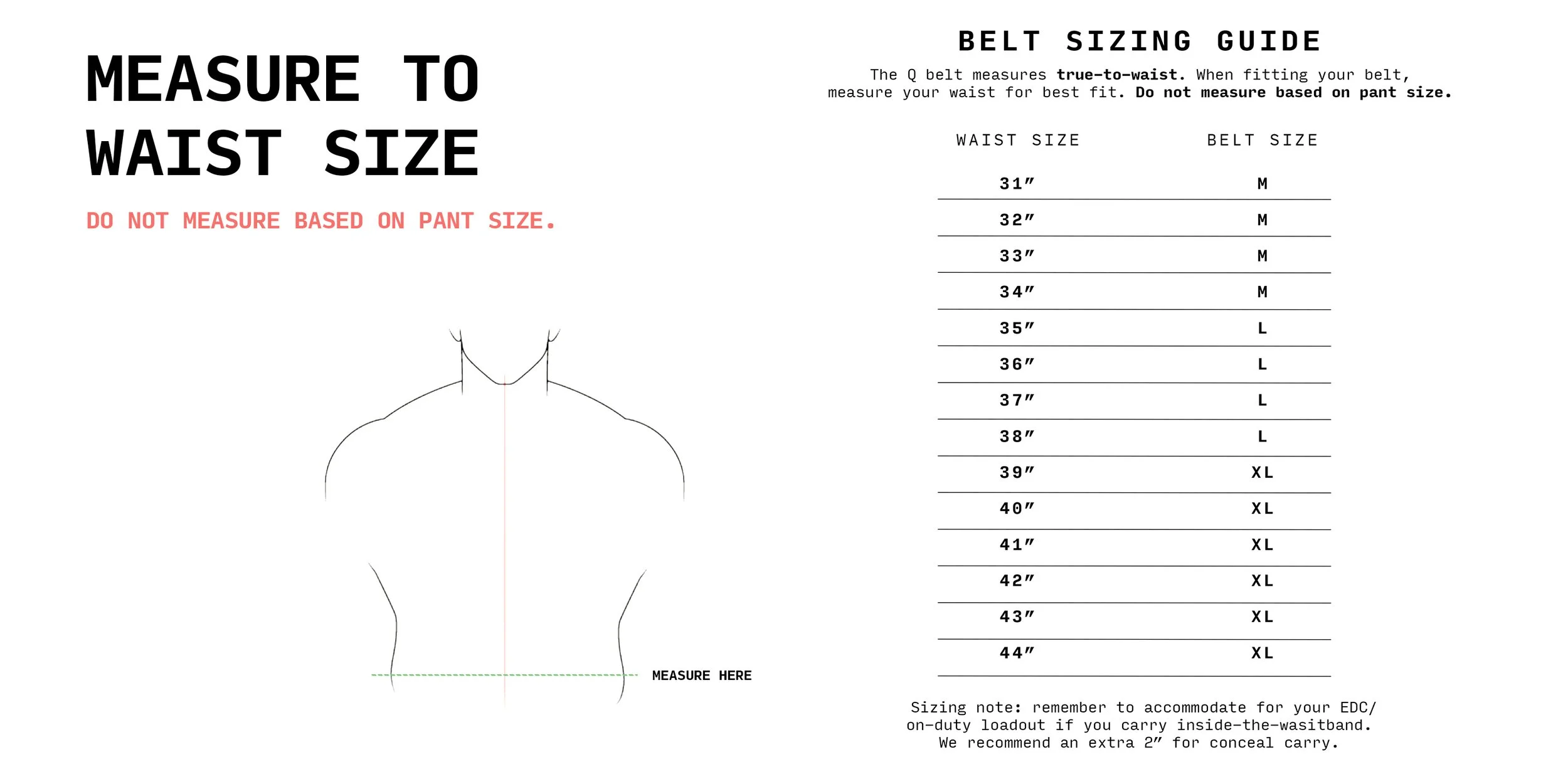 Fitment is true to size. Remember to accommodate for your EDC/Duty Carry. If you find yourself between sizes, we recommend sizing up which is why there is crossover between the sizes.